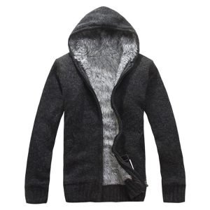 Autumn Winter Men’s Thick Sweatercoat Collar Zipper Sweater Coat Outerwear Winter Fleece Cashmere Liner SweatersTurn-down Collar